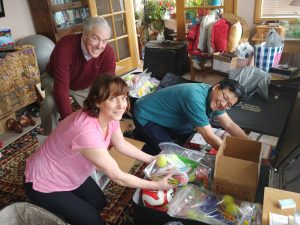 A drizzly April day didn’t dampen our team spirits to assemble in northeast Tacoma to get our supplies in order and stashed in nine big suitcases and a duffle.