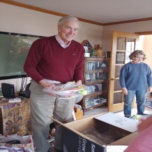 Mary Altena, one of our team members who will not be able to join us on the trip, offered up her house as an assembly point. After all, she has been the point of contact and coordination for getting the children’s gift bags, hot pads and eyeglasses together and was storing most of the stuff for us in her home already. Many boxes and plastic bags waiting. These included an assortment of tools requested by the Hands for Peacemaking field staff, several boxes of Spanish language Bibles, dental supplies, coloring crayons, notebooks, jump ropes, soccer balls, tennis balls, gifts for the village leaders, pencil sharpeners for teachers and other items.