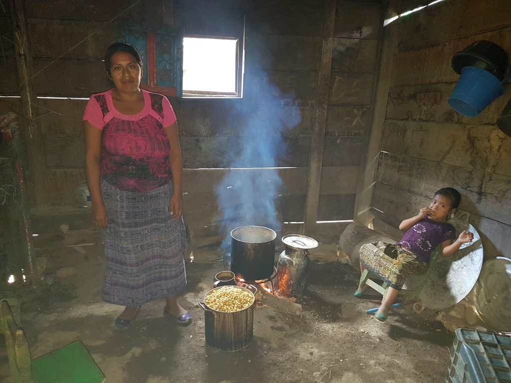 Nestled in the hills at an elevation of 2,300 feet, Rio Azul has 650 residents divided into 128 families. There is no running water, no electrical save a few solar-powered lights, or any indoor plumbing. Most villagers eke out a living growing cardamom, corn, beans and coffee. Our job is to install 128 stoves in this village, stoves that will replace open pit cooking fires in the homes, discharge smoke outside from a stove pipe, and reduce the overall consumption of wood. As before we’ll stay in the village school while there.