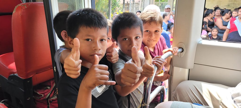 Children saying their final so-longs as we board the bus for our three-hour trip back to Barillas.