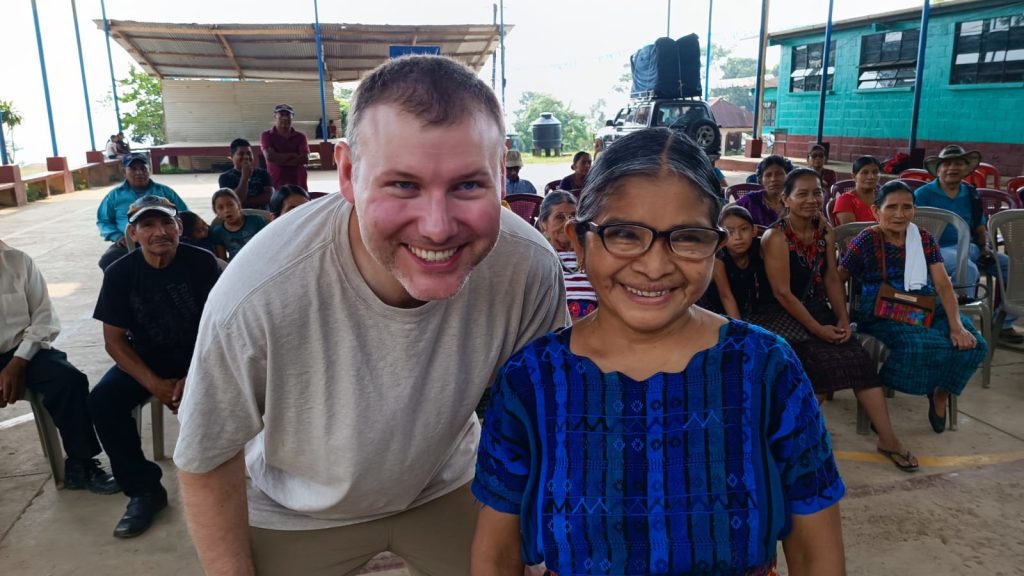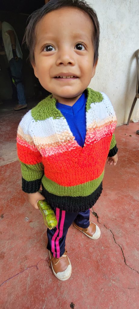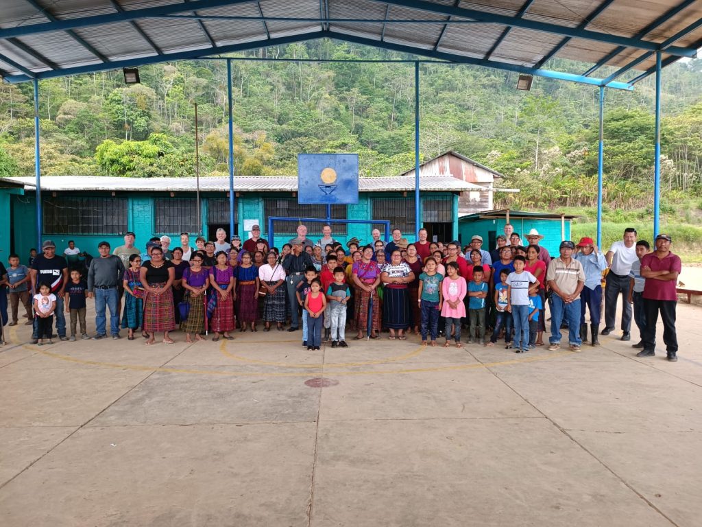 On Wednesday after the stove installation work we hosted an all-village event at our compound. The minister from the Abundant Life Church in Barillas, who speaks fluent Kanjobal, drove up with his wife and preached to the gathering and Dago, their music master, sang some songs. We also performed, singing a rousing rendition of “When the Saints go Marching In” in English with a Spanish verse, plus an all-Spanish tune called Pio Pio Pio, with Conrad leading the charge and Kurt helping him on the ukelele.