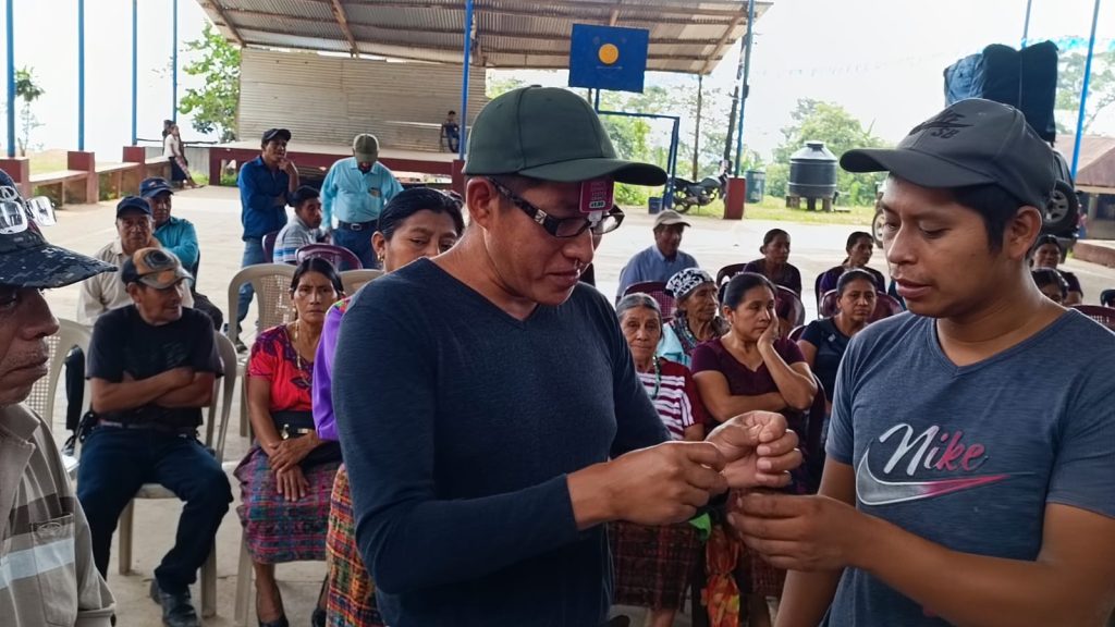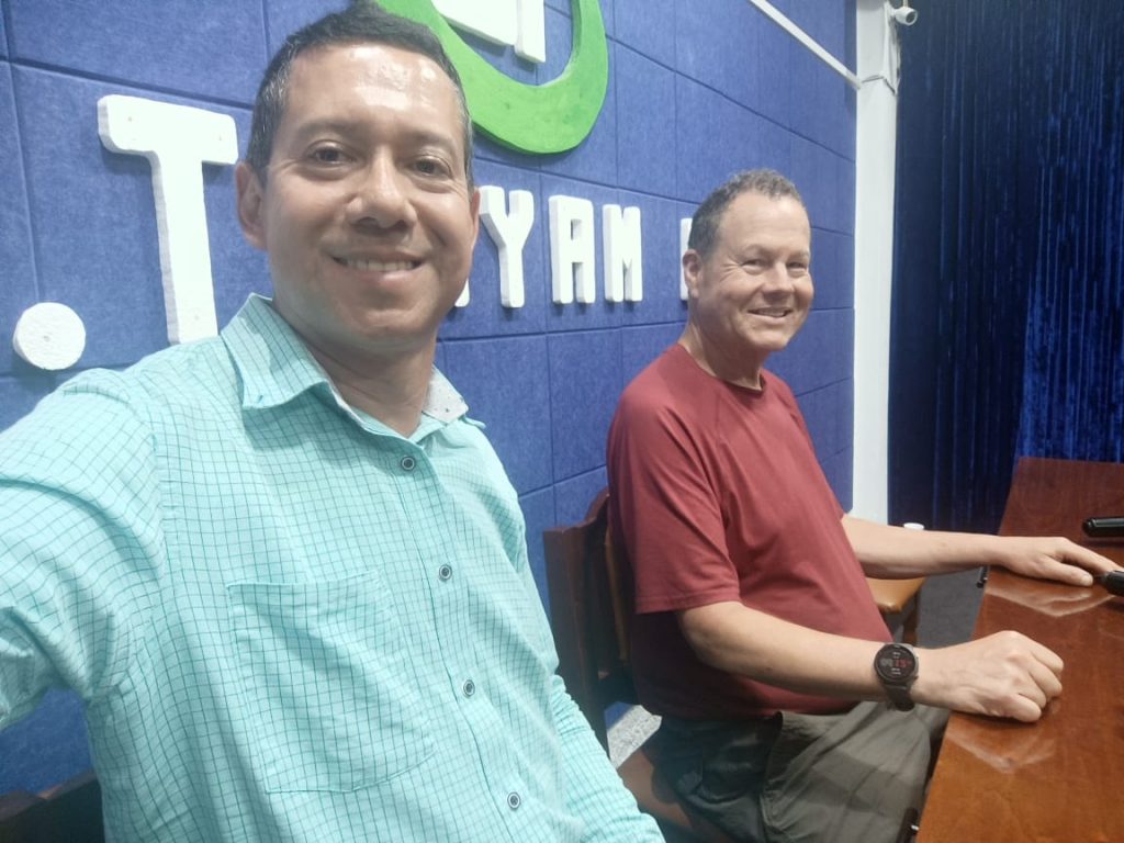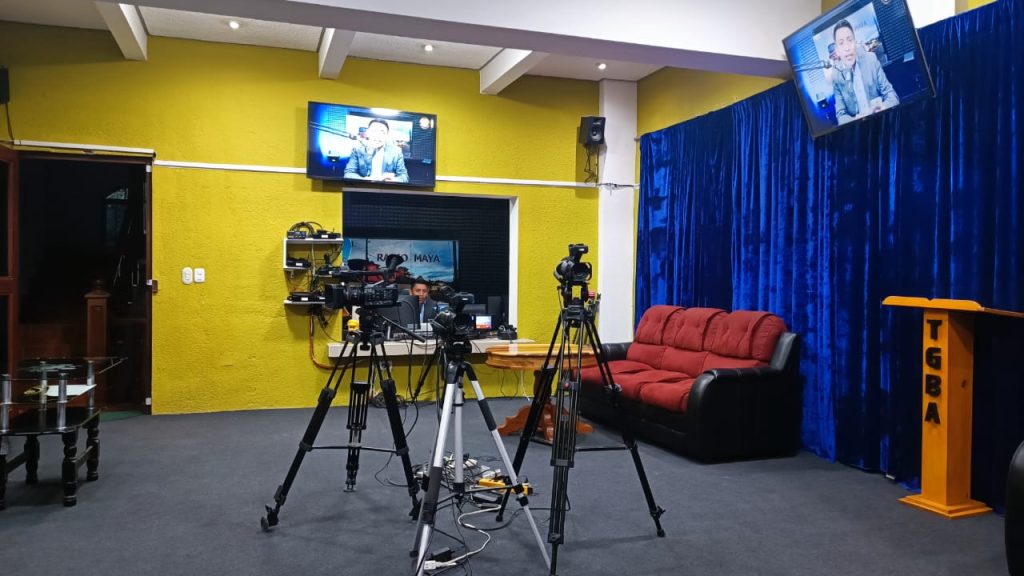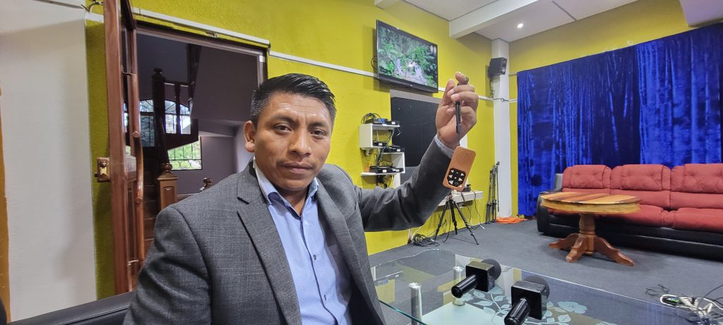 Each family also received a Seedplayer audio Bible story book recorded in Spanish and Kanjobal. Amazingly, as we were demonstrating how to operate the Seedplayer, some of the villagers instantly recognized the voice as being from TV Radio Maya, the station that broadcasts just a few blocks away from the Hands for Peacemaking mission house in Barillas. So this evening Marco and I wandered over to the station to drop off a couple of leftovers and show them how their words are being used. The broadcaster on duty, a fellow named Pascal Sebastian Francisco, took incredible interest in both the Seedplayers and our mission and before we knew it we were live on air giving an extended interview about our work.
