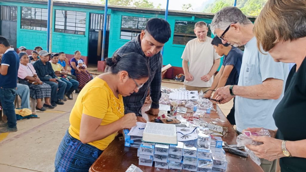 Our last acts of kindness to the villagers of La Capilla before saying goodbye today was to fit those in need with a brand new pair of reader glasses then to give a few school supplies to grateful teachers.