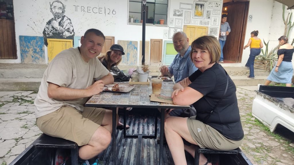 While Marco and I were at the radio station, other team members were taking a tour of Barillas, stopping at a local coffee shop, listening to music at the town square and shopping.