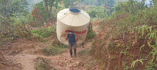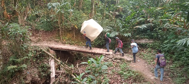 Below are a few photos from the trip so far. I am also including a few photos of the incredible effort to get one of the water tanks we purchased for the village of Moxon up the trail.