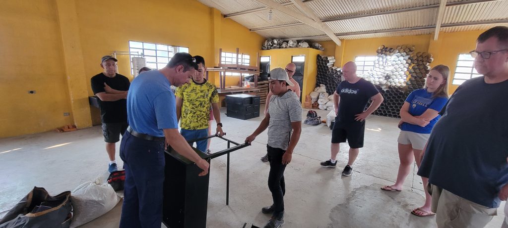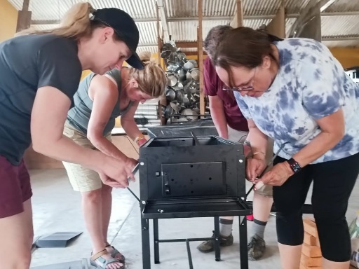 Mimi, Emelda and Elena served us a fine lunch then it was time for stove assembly training in the Aller Skills Center out back where the stoves are manufactured. On Sunday after church we will pack up and head for Los Limas, the village where we will stay through Thursday morning.