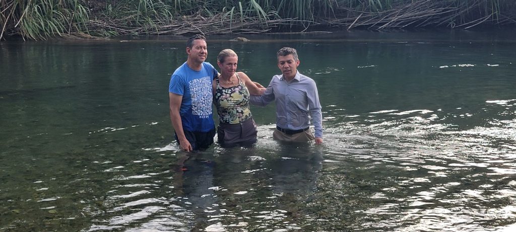 This afternoon’s trip had a special purpose. Team member Nancy Voorhees decided to be baptized while in the village on this mission trip. Marco had invited the associate pastor from his church, Pastor Johnny, to preach to the villagers tonight anyway and the pastor was more than happy to perform the full-immersion baptism in the river in front of the team. A special and powerful moment for all who were there to witness, and possibly a Hands for Peacemaking team “first”.