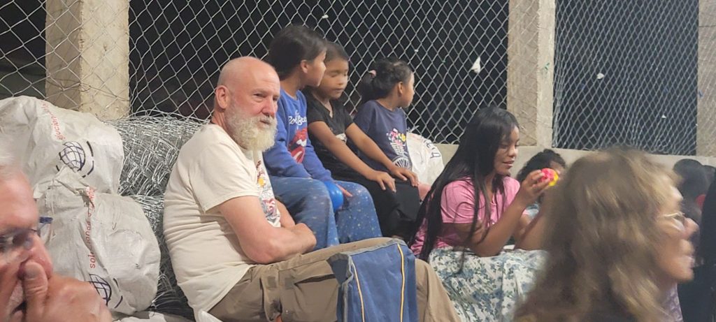 Following dinner tonight the team assembled with the villagers in the large covered room by the school, where the villagers saw a stove maintenance video, heard a message from the pastor in their native Mayan language and were treated to a slide show Marco had prepared of team members working in their homes – always a hit.